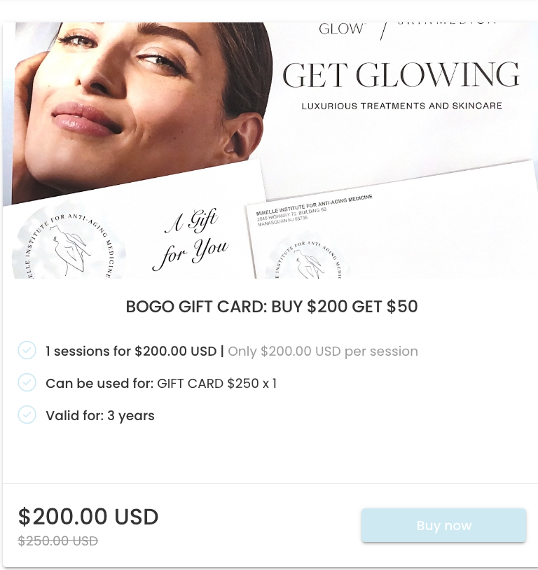 Treat yourself or someone special to a little extra luxury! With our exclusive $200 Gift Card offer, you’ll receive an additional $50 bonus card. Perfect for enhancing your beauty and wellness journey at Mirelle Institute for Anti-Aging Medicine, this offer is the ideal way to make your favorite treatments even more accessible.