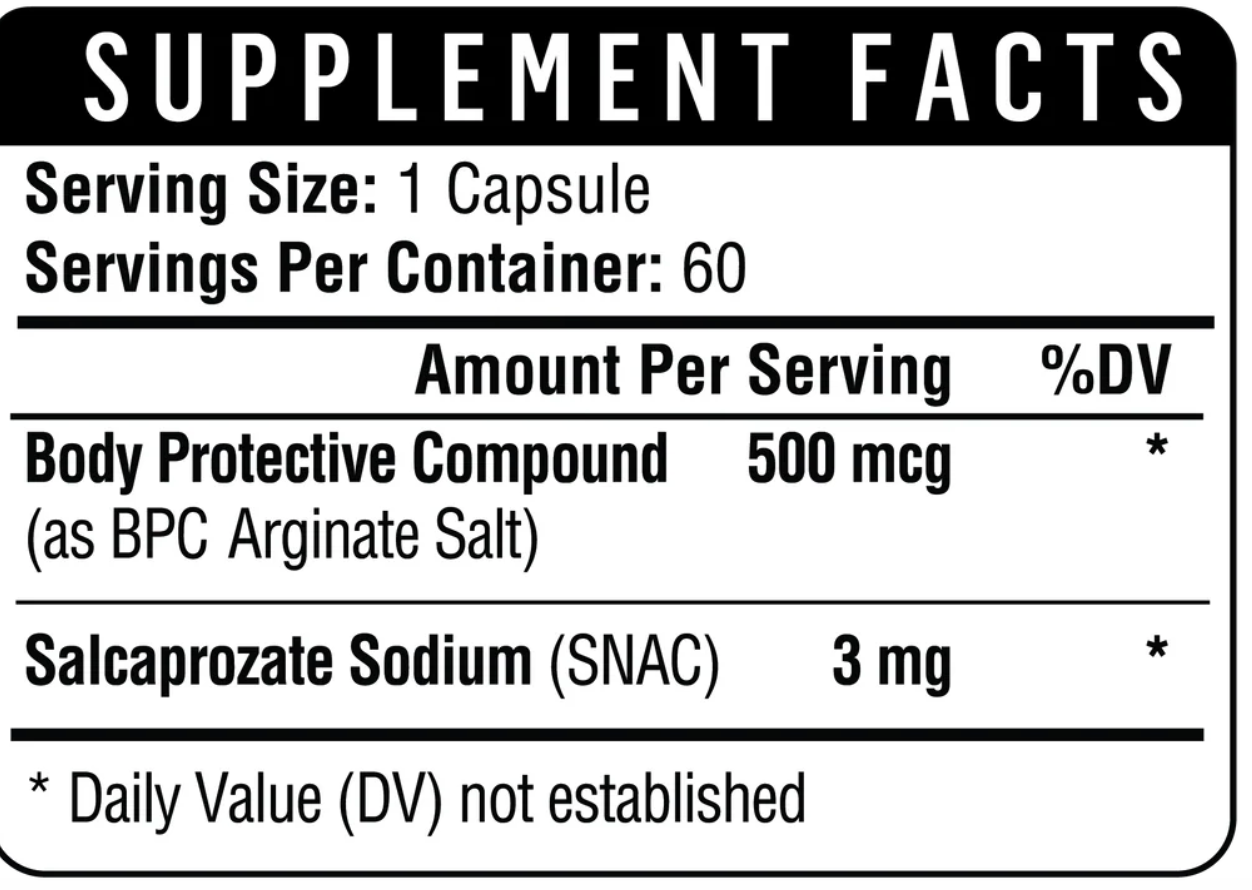 Healthgevity’s optimized ratio of SNAC to peptide active was developed to balance stability, absorption, and efficacy — ensuring reliable delivery without compromising the amino sequence integrity. The result is a next-generation oral complexdesigned to provide predictable, targeted support for those seeking to promote recovery, cellular resilience, and gastrointestinal wellness as part of their longevity regimen.