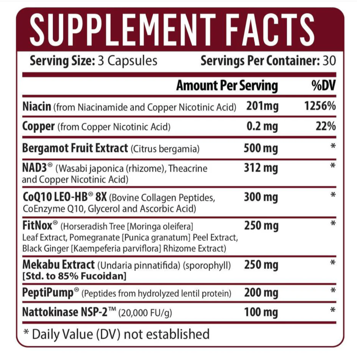 This next-generation formula integrates NAD3®, niacinamide, PeptiPump™, CoQ10 (LEO-HB®), Fucoidan, FitNox®, Nattokinase, and Citrus Bergamot, offering a unified approach to promote vascular elasticity, healthy blood flow, and balanced inflammatory and oxidative responses—all key factors for long-term cardiovascular wellness.