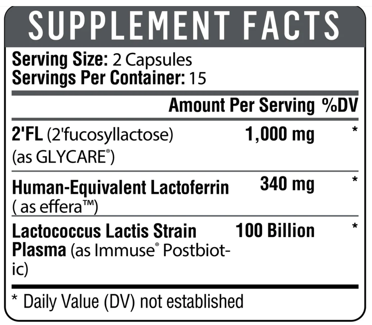 immunoRESTORE+™ combines these cutting-edge bioactives—Effera™ human-equivalent lactoferrin, IMMUSE® postbiotic, and 2′-FL HMO—for a uniquely comprehensive approach to *immune balance, iron metabolism, and gut health.